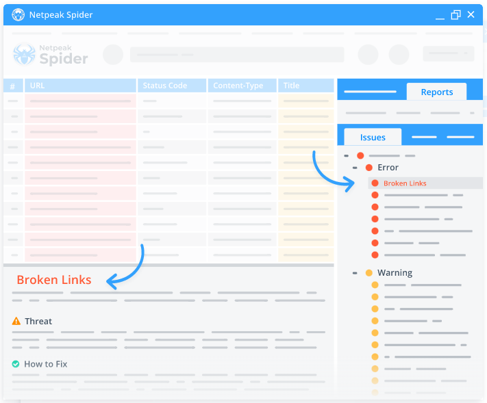 Asegúrese de que todos los enlaces internos son correctos y no conducen a páginas con errores 404. Esto puede hacerse utilizando cualquier rastreador disponible: Screaming Frog, Netpeak Spider y otros programas y servicios.