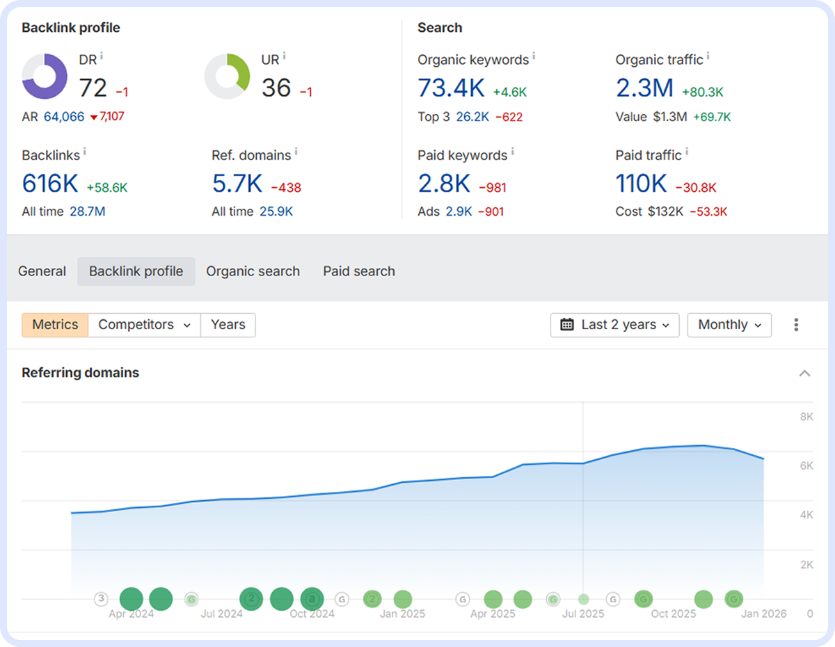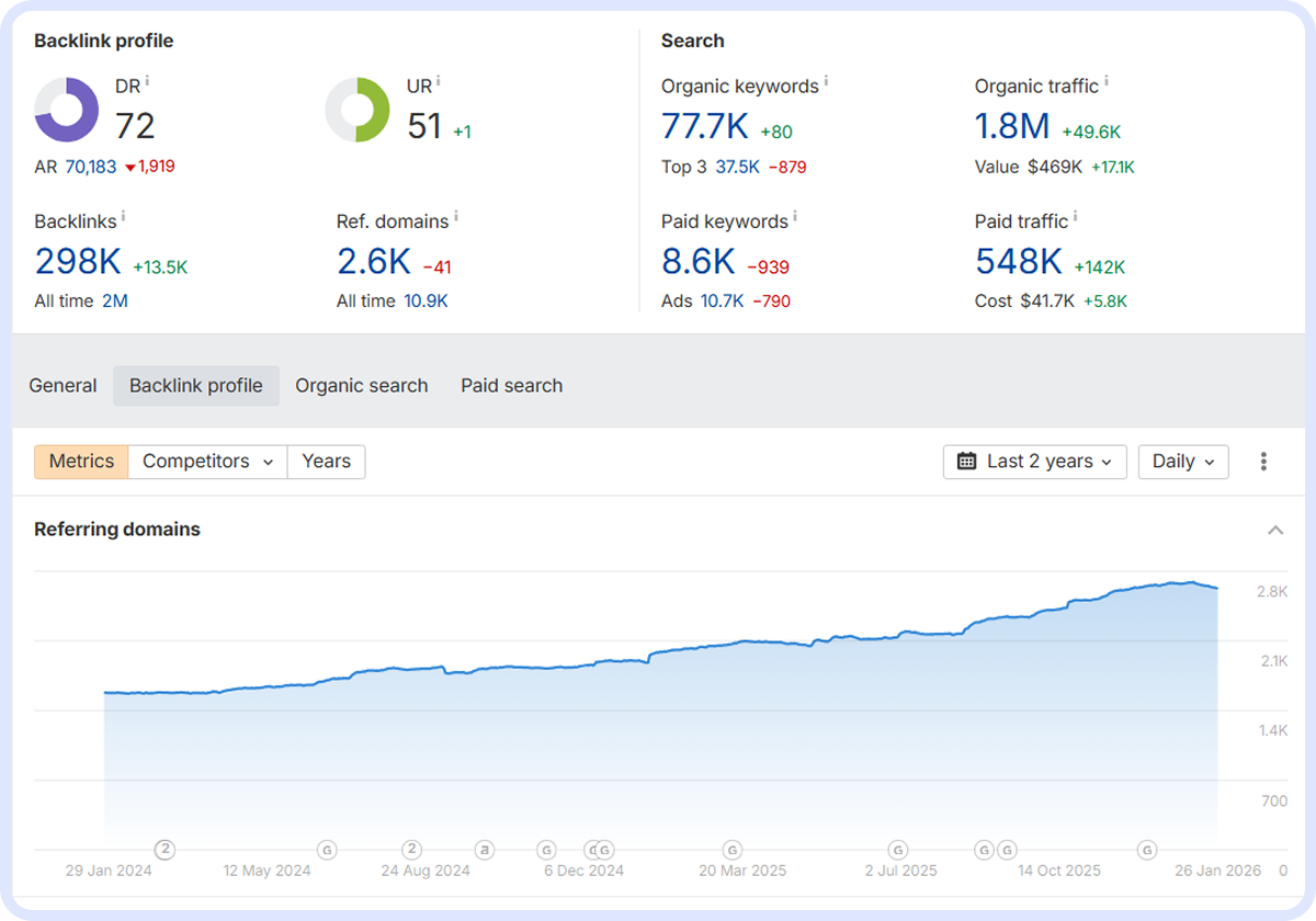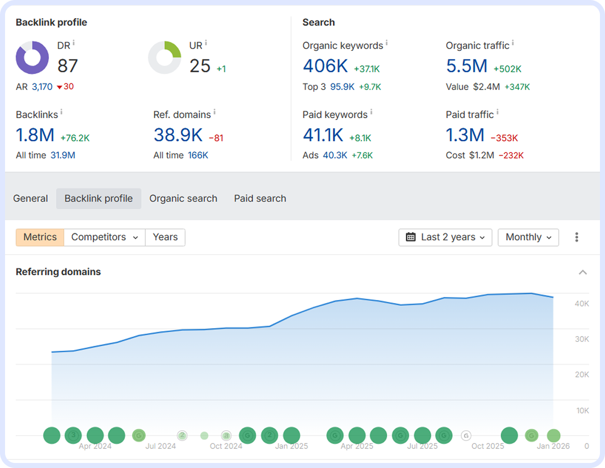 • Strong backlink profiles improve search rankings, traffic, and sales.